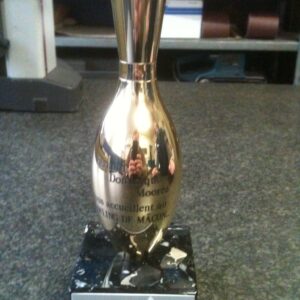 Choisissez la Quille qui vous convient. Il y a trois modèles standards figurant ci-dessous. La Quille sera personnalisée avec le texte gravé selon vos souhaits (page suivante), et présentée dans un coffret en bois avec couvercle transparent.
