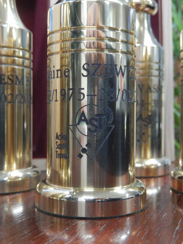 Gravure d’un logo ou d’un dessin vectorisé. La gravure peut être ajoutée à la commande après accord sur le dessin et suivant la place disponible. Merci de nous envoyer les éléments par Mail et/ou de prendre contact pour vous assurer de la faisabilité de votre demande.